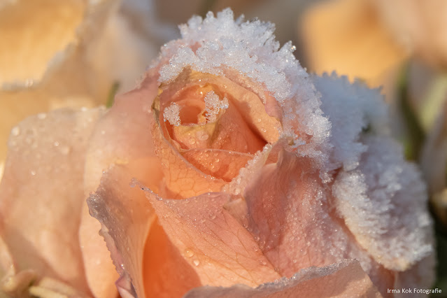 Ik heb wat foto's van rijp op plantjes en bloemen kunnen maken.